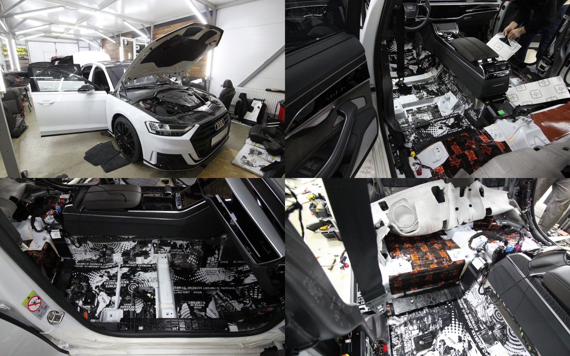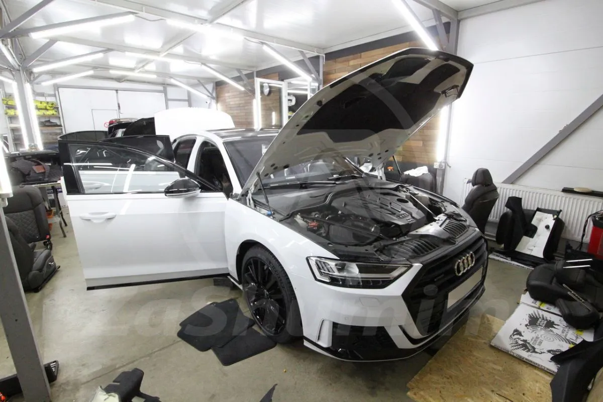 Бескомпромиссный Hi-End уровень шумоизоляции для Audi A8, с использованием только премиальных шумо, виброизоляционных материалов для достижения максимального акустического комфорта в салоне автомобиля.